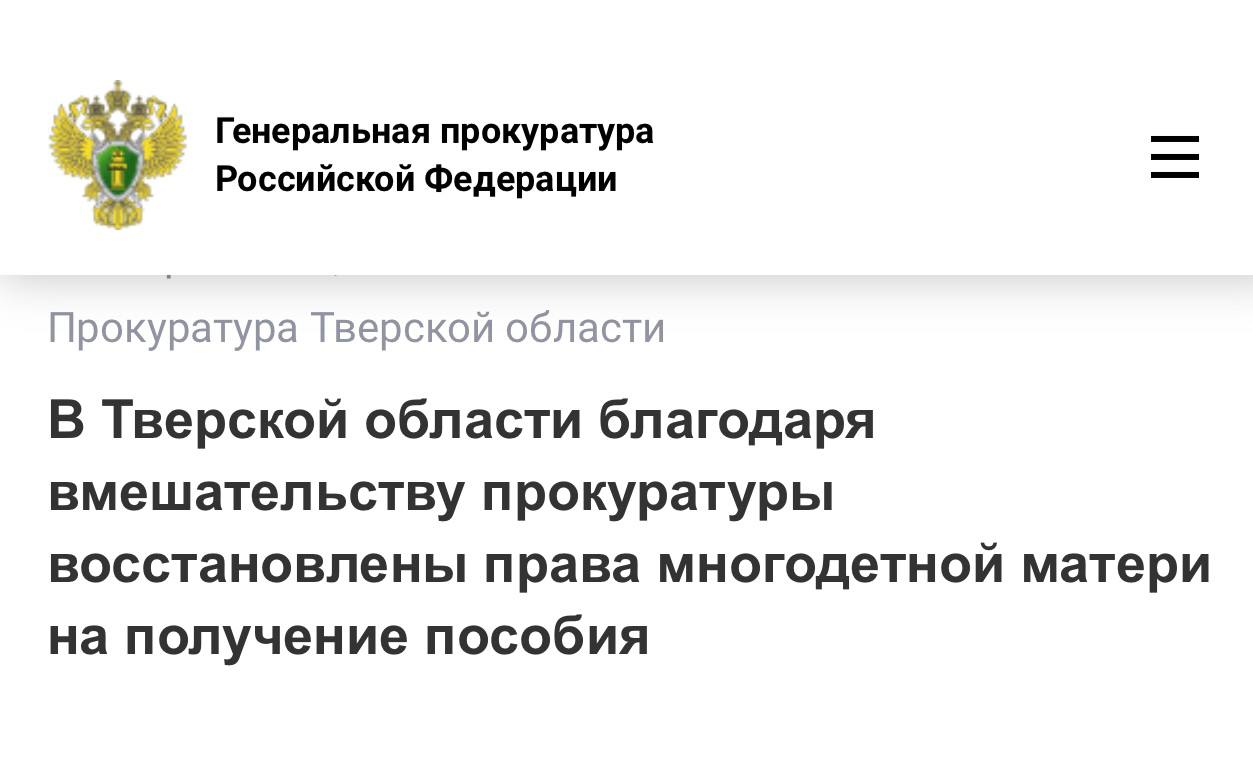После вмешательства надзорного ведомства женщине назначена положенная мера поддержки, а также осуществлен перерасчет и выплачено пособие в размере свыше 600 тыс. рублей.