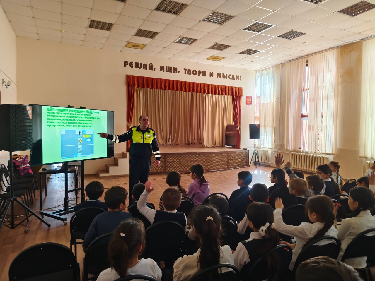 Сотрудники Госавтоинспекции города Твери провели интерактивный курс по ПДД «Дорожные ловушки» в СОШ № 2