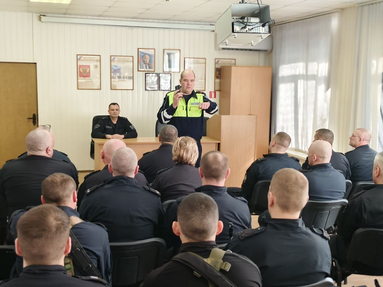 24 марта для сотрудников ОМОН «Барс» Управления Росгвардии по Тверской области состоялось занятие, на котором старший инспектор БДД отдела Госавтоинспекции УМВД России по городу Твери Александр Григорьев напомнил сотрудникам ОМОНа Правила безопасного поведения на дороге. Личному составу рассказали о состоянии аварийности на дорогах нашего города, а также об основных причинах дорожно-транспортных происшествий. Инспектор напомнил о необходимости соблюдения скоростного режима и использования ремней безопасности, рассказал об административной и уголовной ответственности водителей за нарушение ПДД.