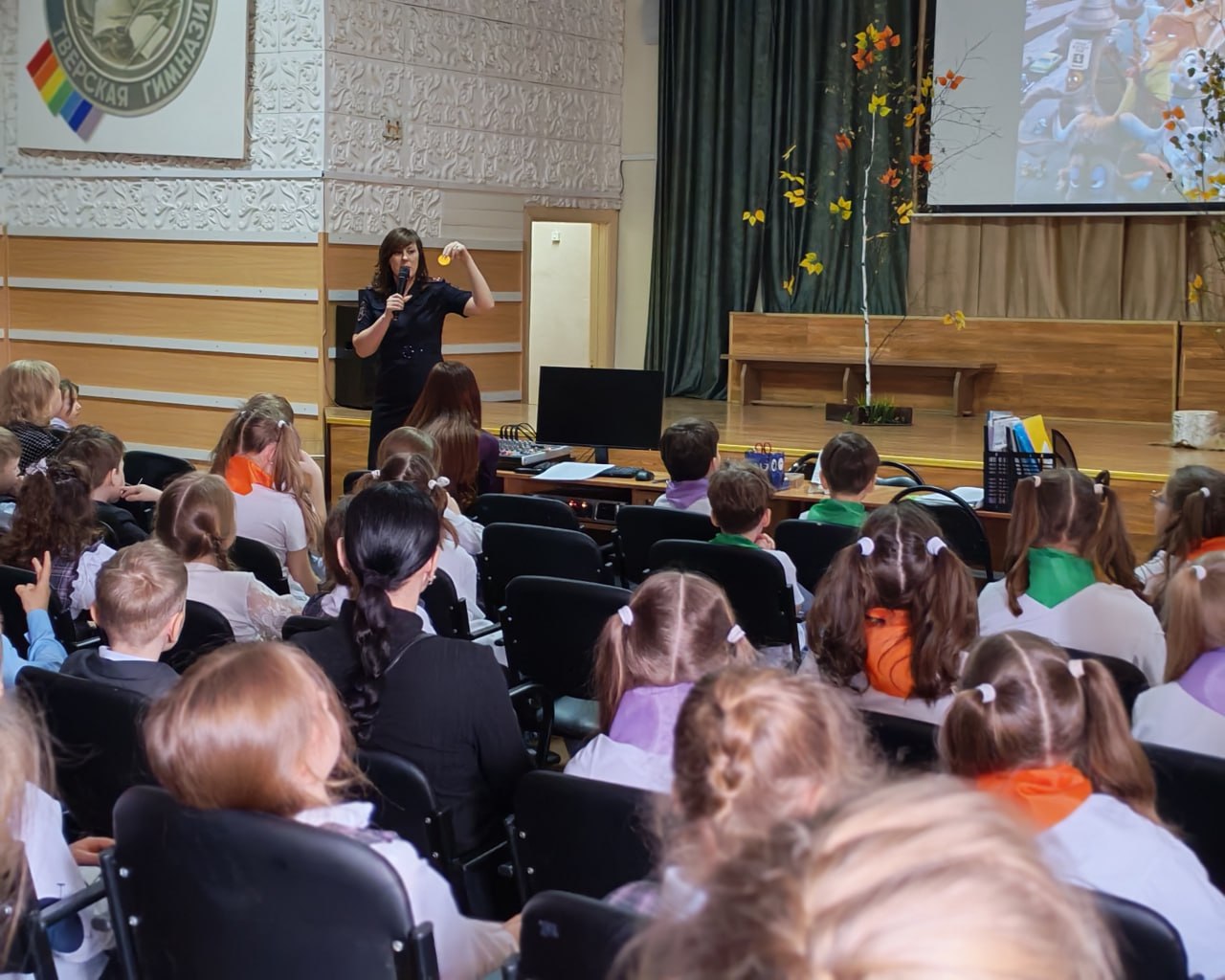 Сотрудники Госавтоинспекции и отряд ЮИД МОУ Гимназия №8 города Твери выступила перед учащимися 1-х и 2-х классов с творческой программой по пропаганде детского дорожно-транспортного травматизма