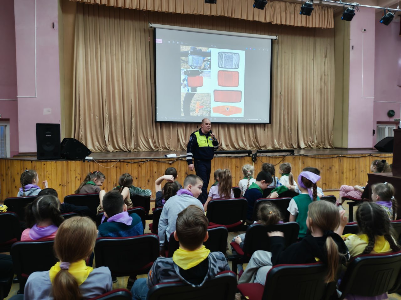 Также учащимся были разъяснены правила и необходимость ношения и использования световозвращающих элементов на одежде и рюкзаке (портфеле).