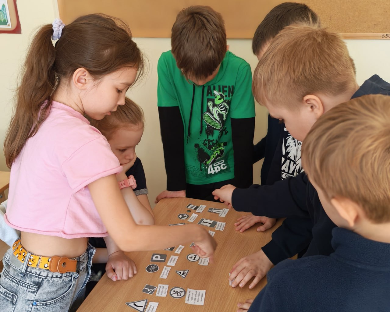 ребята решали ребусы, собирали тематические пазлы и распределяли дорожные знаки по категориям: запрещающие, предупреждающие и знаки особых предписаний.