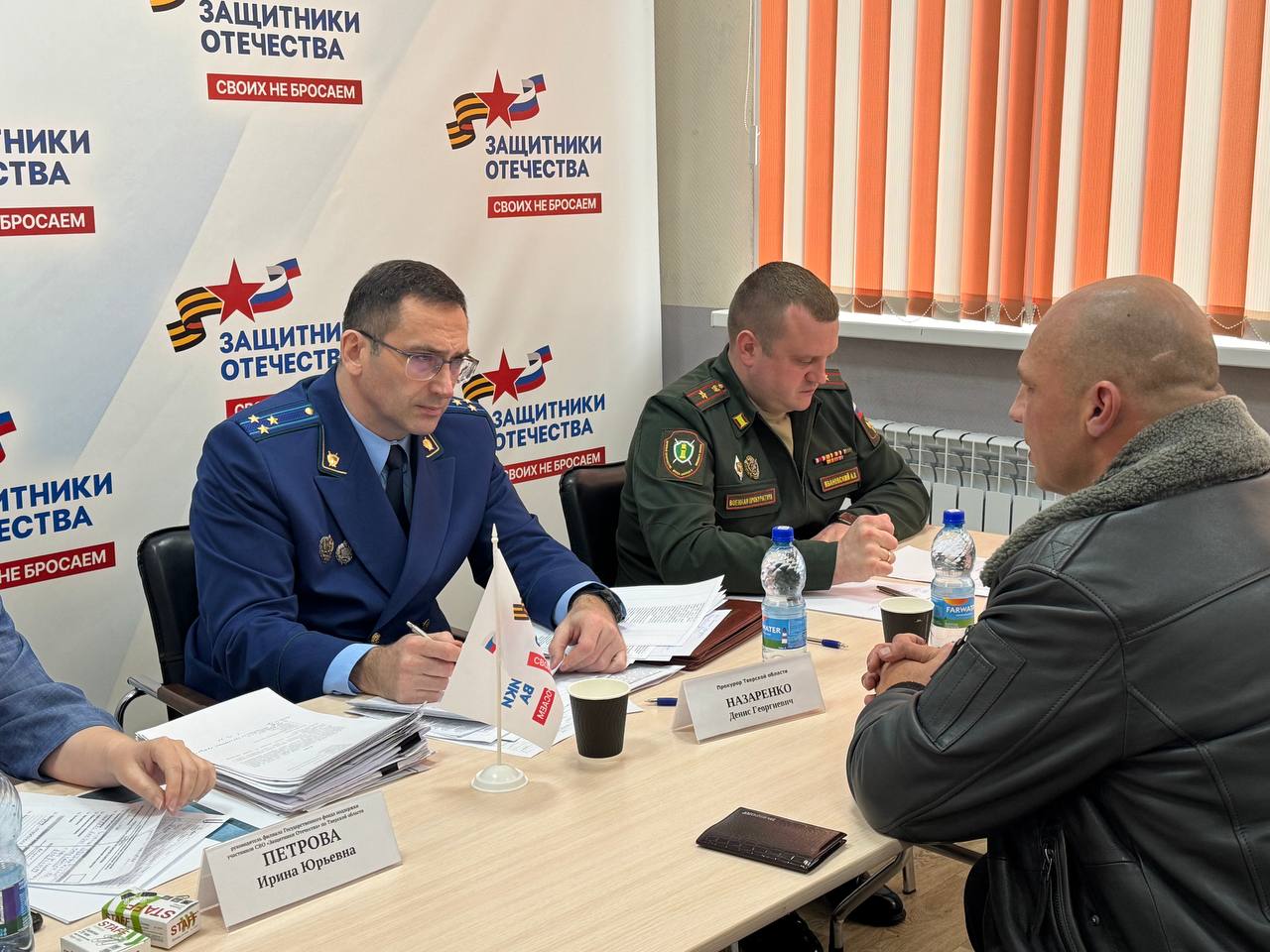 Сегодня, 9 апреля 2026 г., прокурор Тверской области Денис Назаренко провел прием граждан совместно с руководителем филиала Государственного фонда поддержки участников специальной военной операции «Защитники Отечества» по Тверской области Ириной Петровой и заместителем военного прокурора Тверского гарнизона Артемом Ивановским.