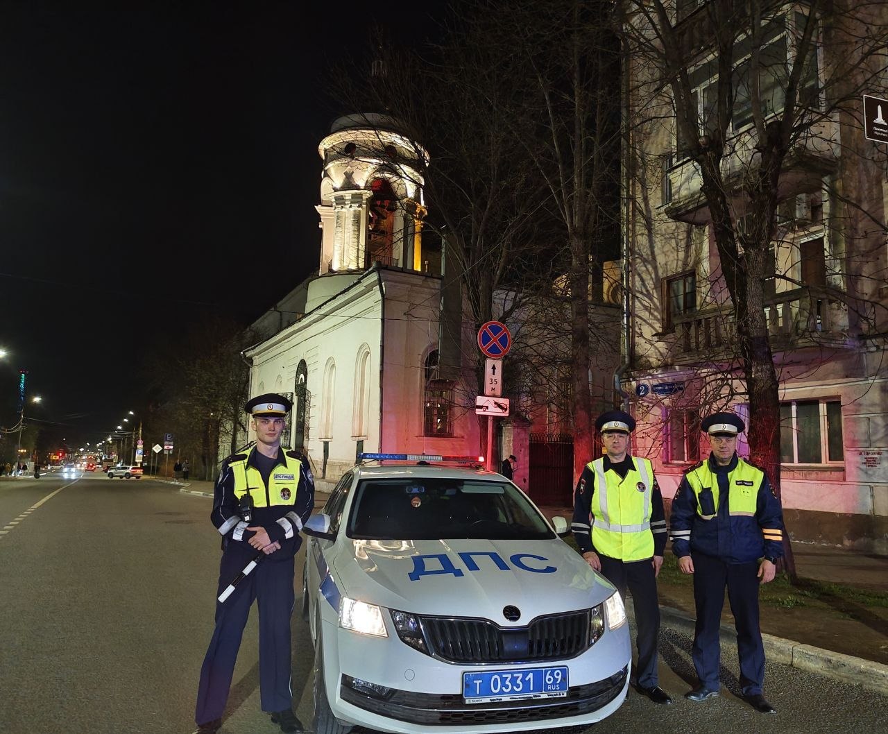 Сотрудники Госавтоинспекции города Твери обеспечивают безопасность вблизи церквей во время проведения религиозного праздника «Пасха»