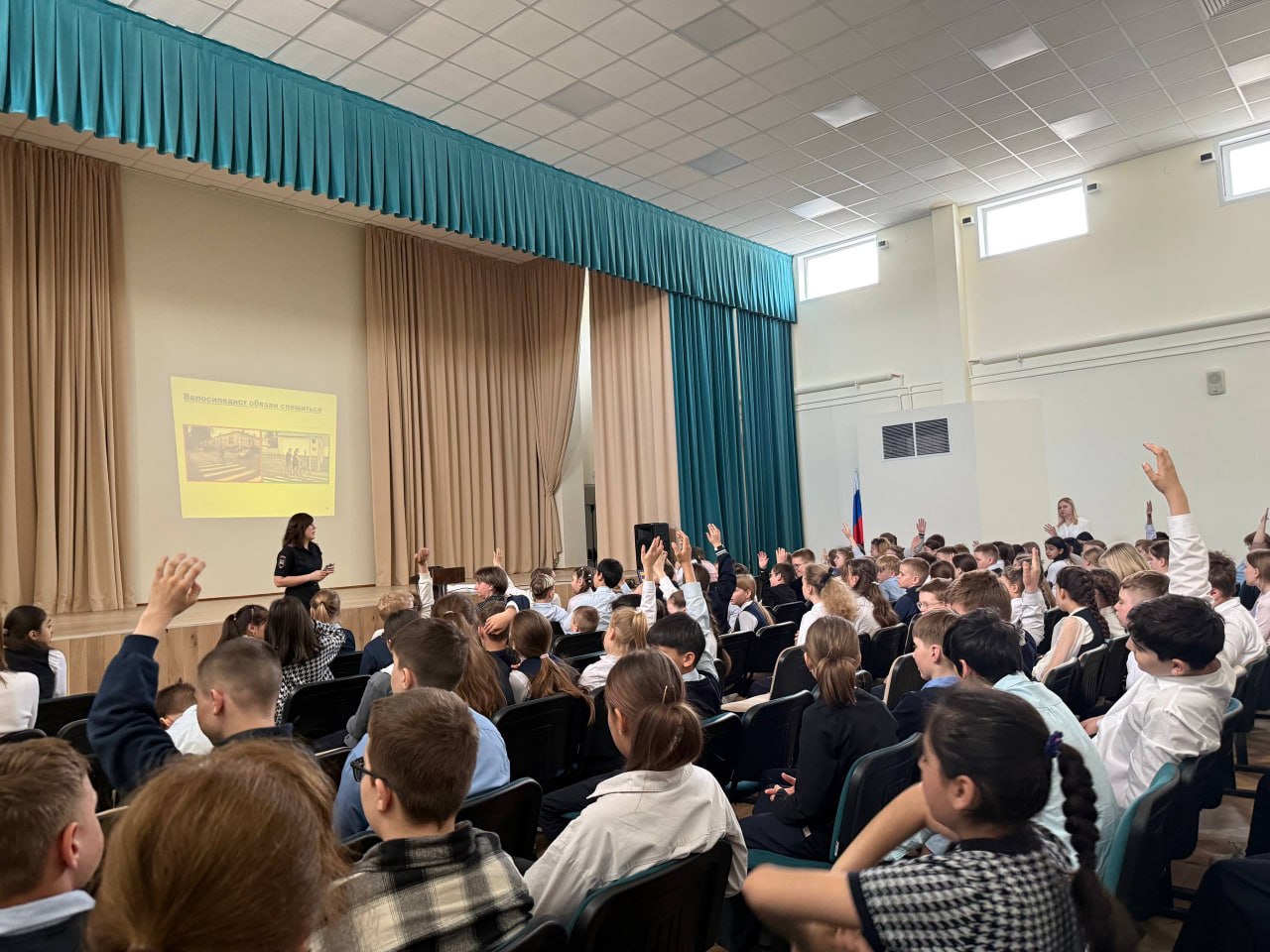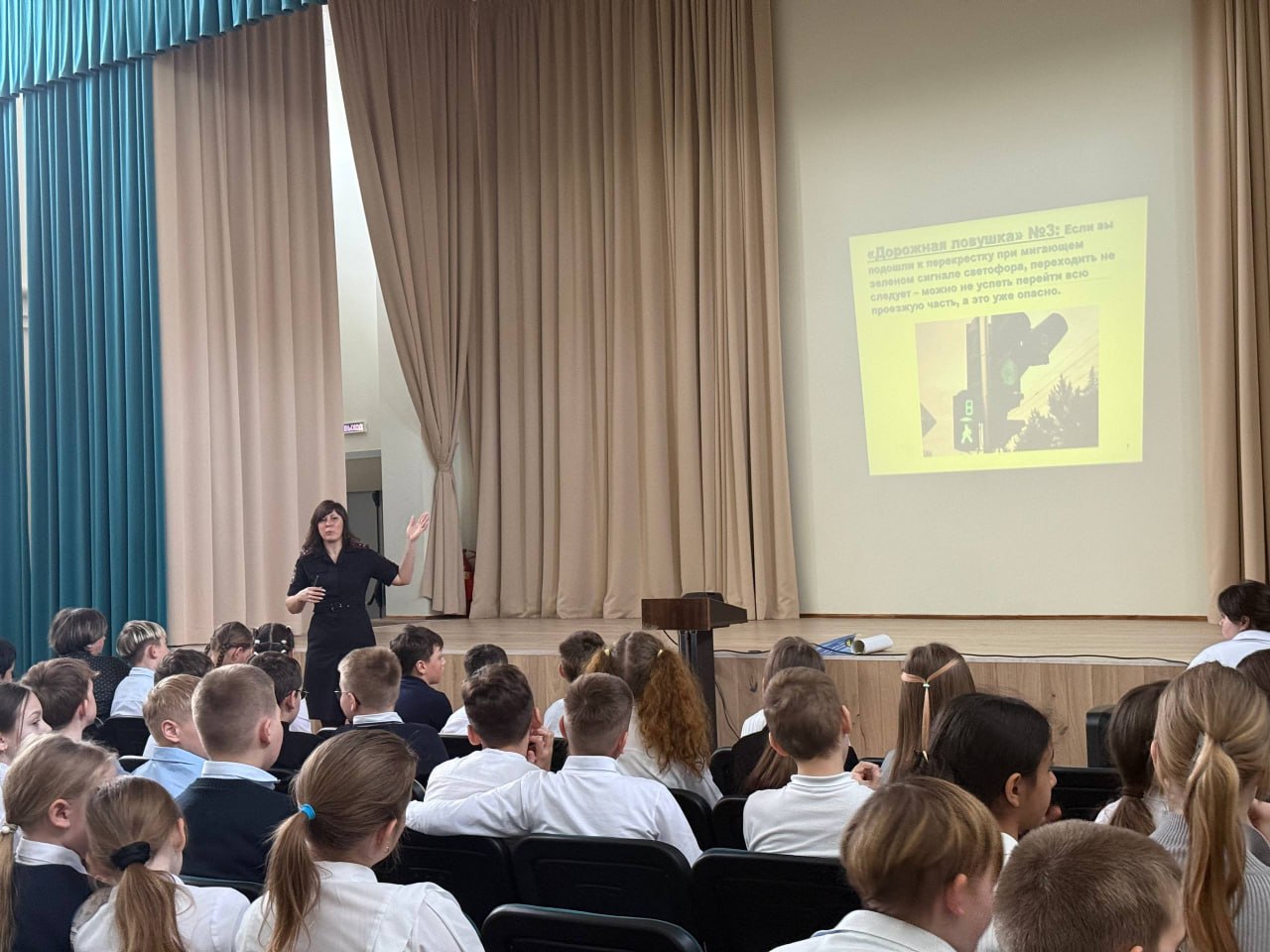 Инспекторы в доступной форме рассказали ребятам о типичных опасных ситуациях на дороге – так называемых «ловушках», в которые по неосторожности могут попасть пешеходы. Школьникам продемонстрировали мультипликационные истории, ярко иллюстрирующие эти ловушки, а также познавательную презентацию. Такой комплексный подход помог детям не только увидеть, как нельзя поступать на проезжей части, но и понять, как правильно действовать, чтобы избежать опасности.
