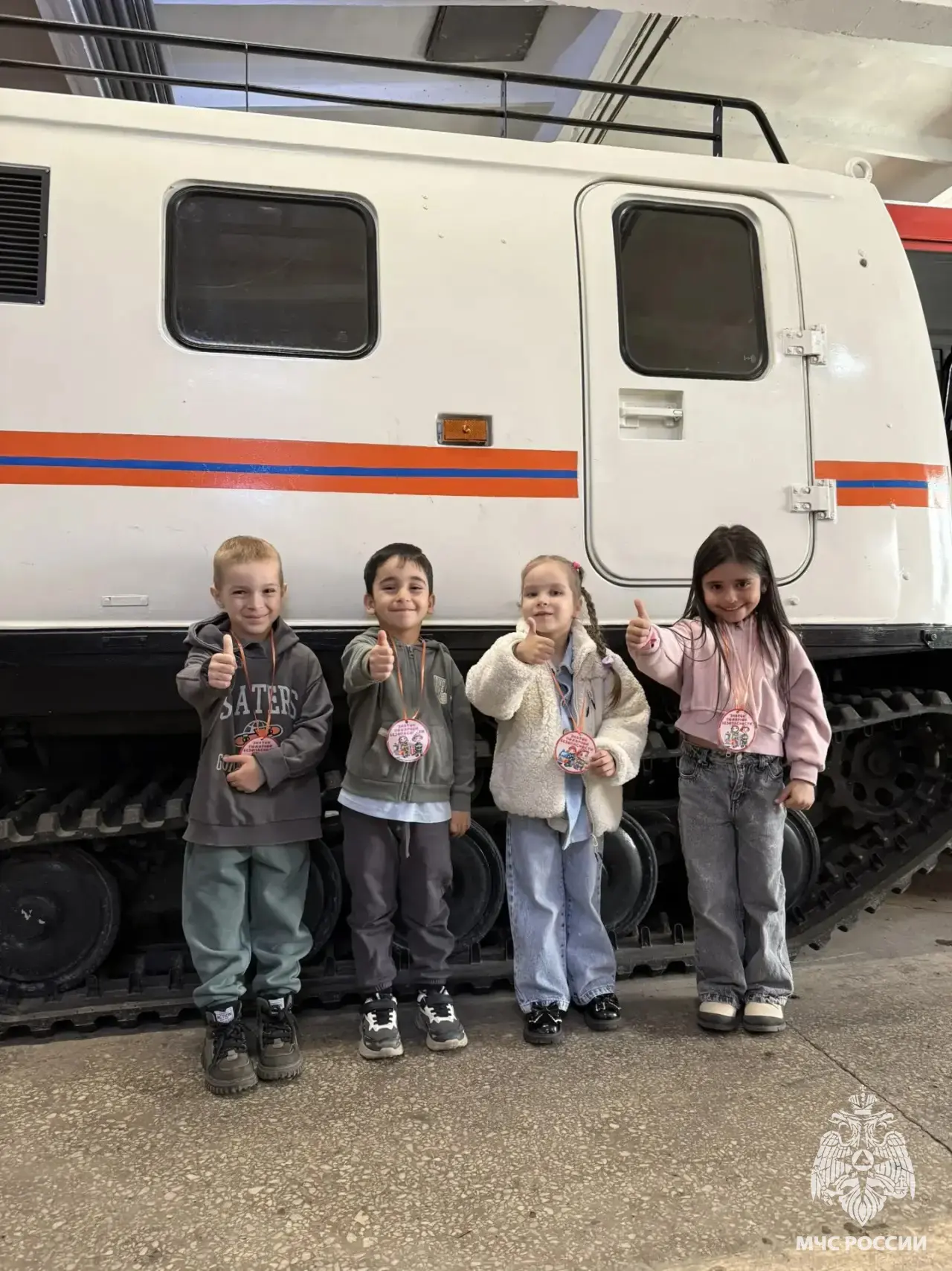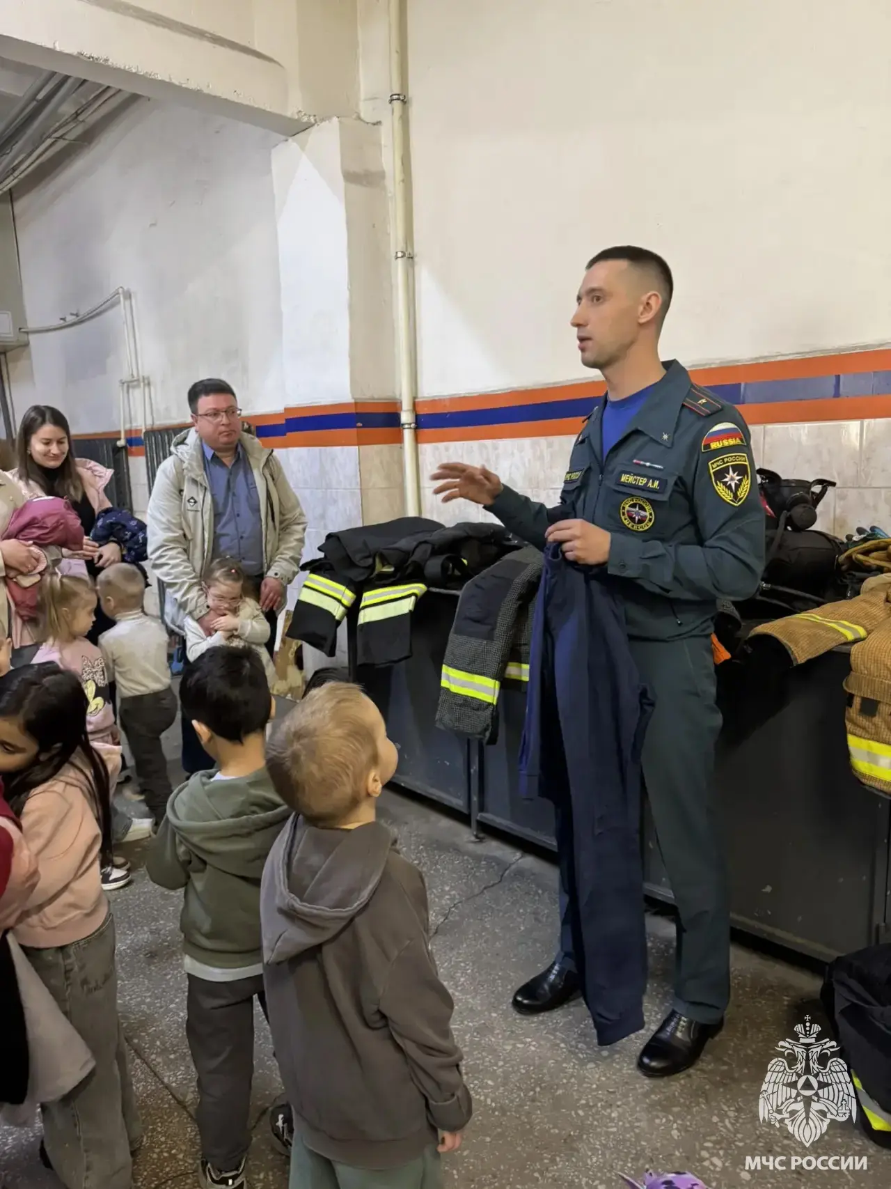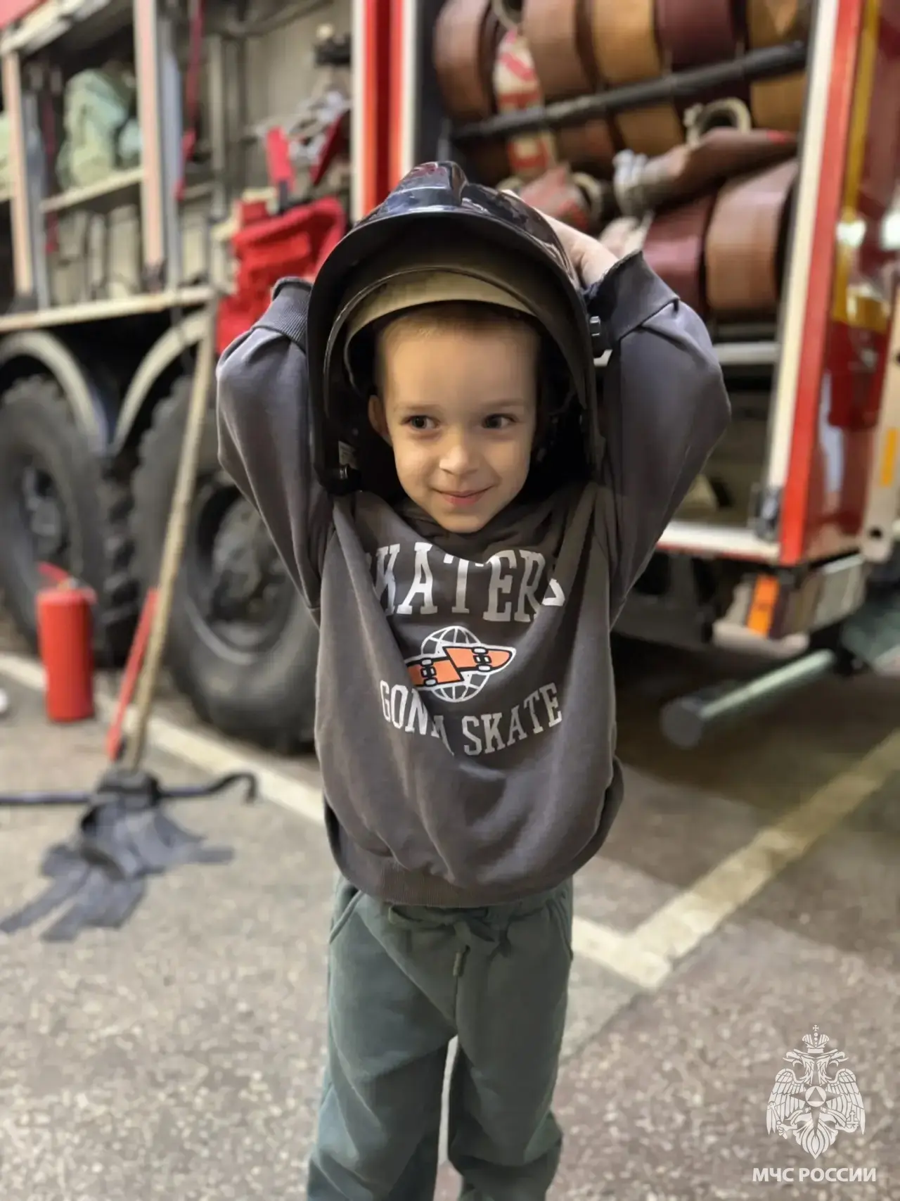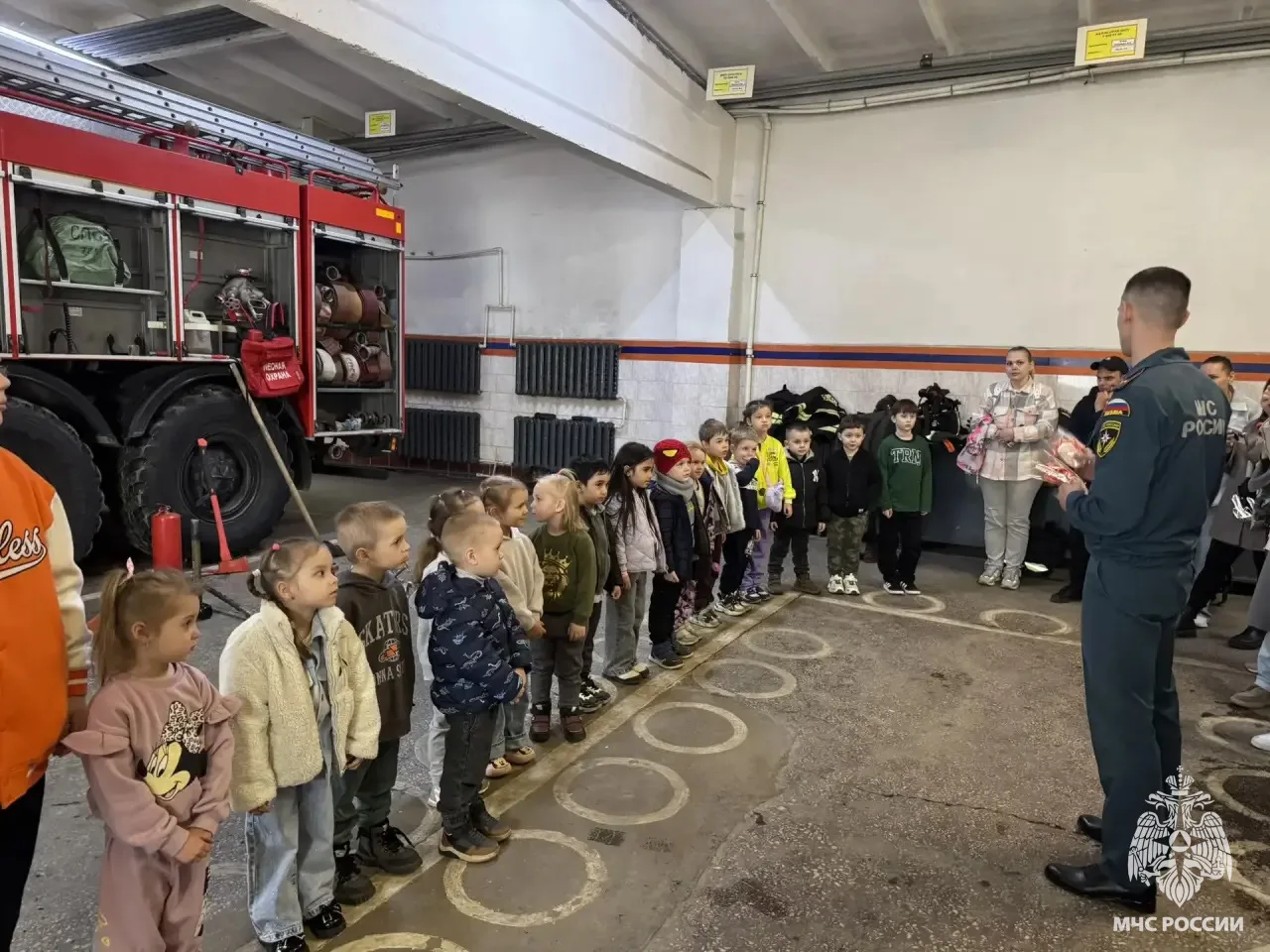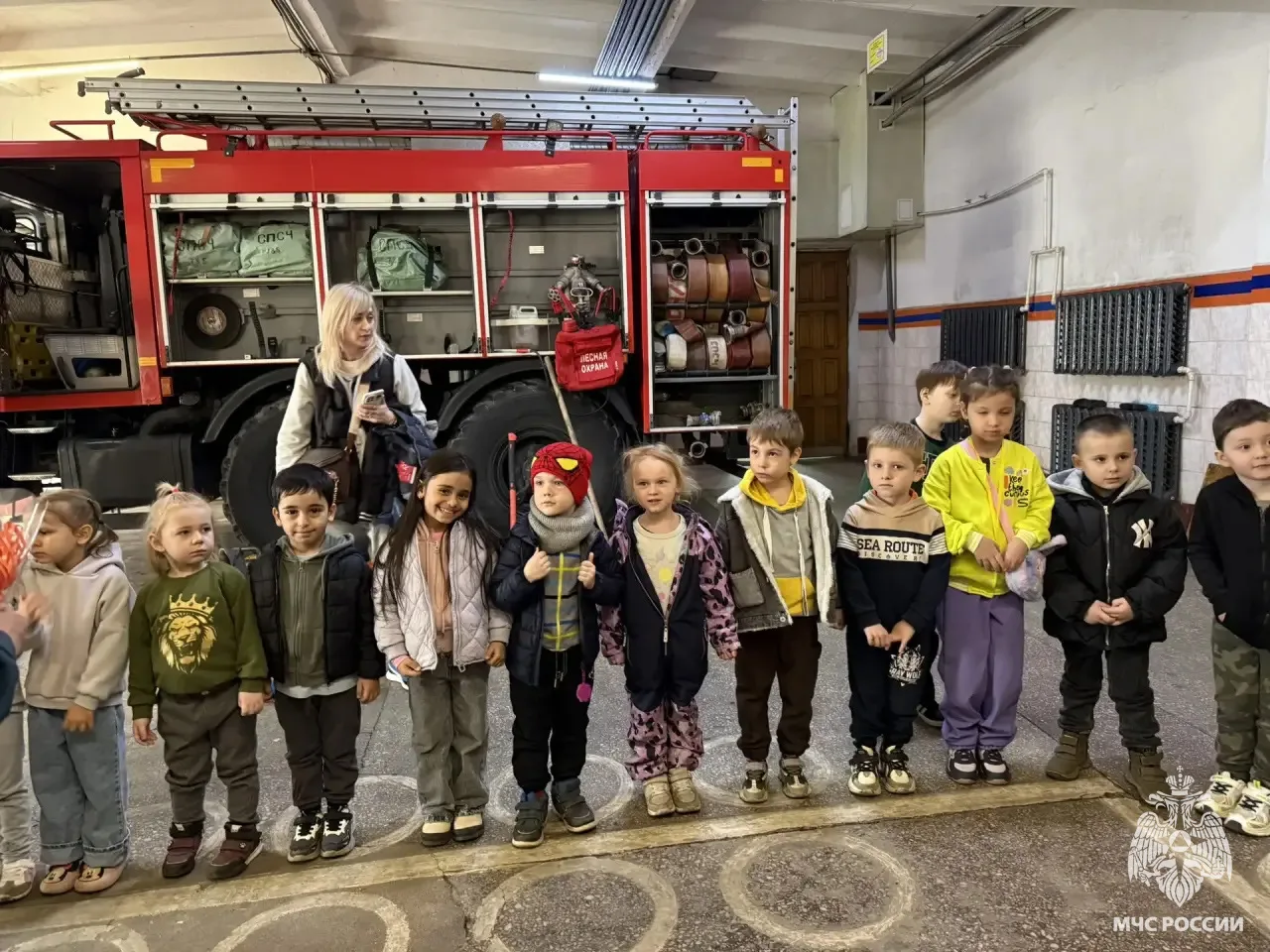 Во время экскурсии сотрудники части показали детям специализированную технику и оборудование, используемое для борьбы с огнем. Дети с восторгом рассматривали пожарные машины и примеряли на себя каски и защитные костюмы.