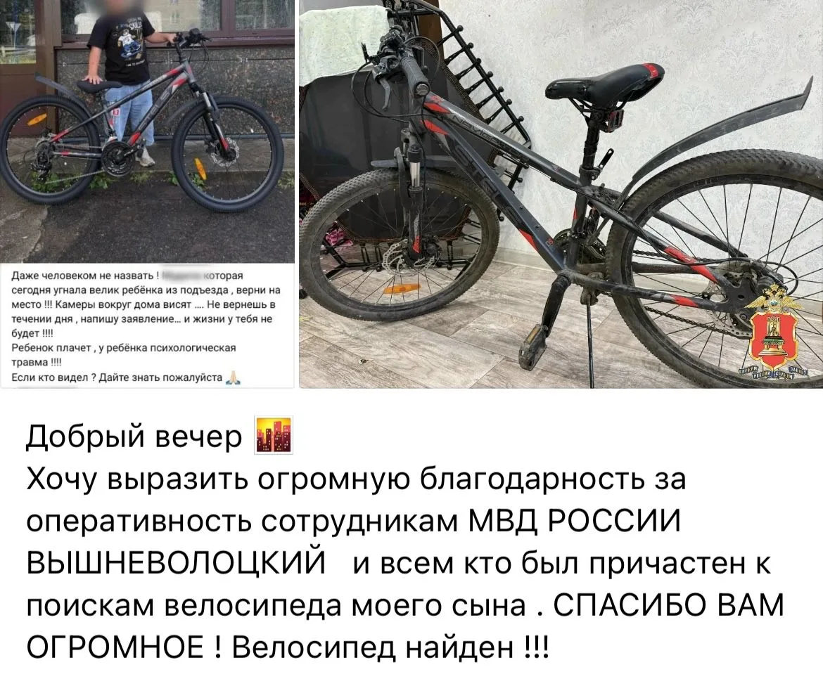 В одной из социальных групп появилось трогательное сообщение от женщины, сыну которой был возвращен украденный велосипед. Очень приятно получать такие благодарности!