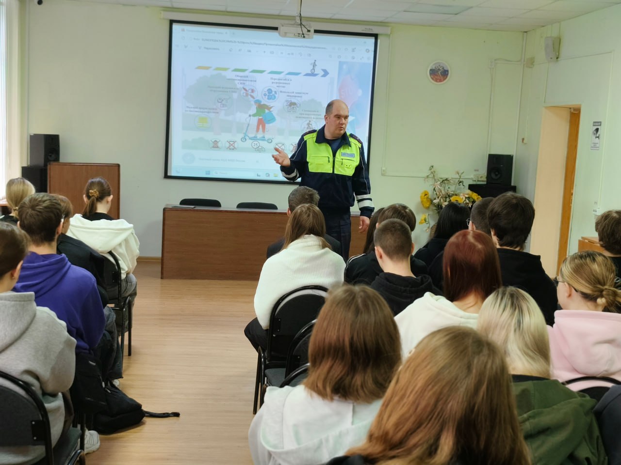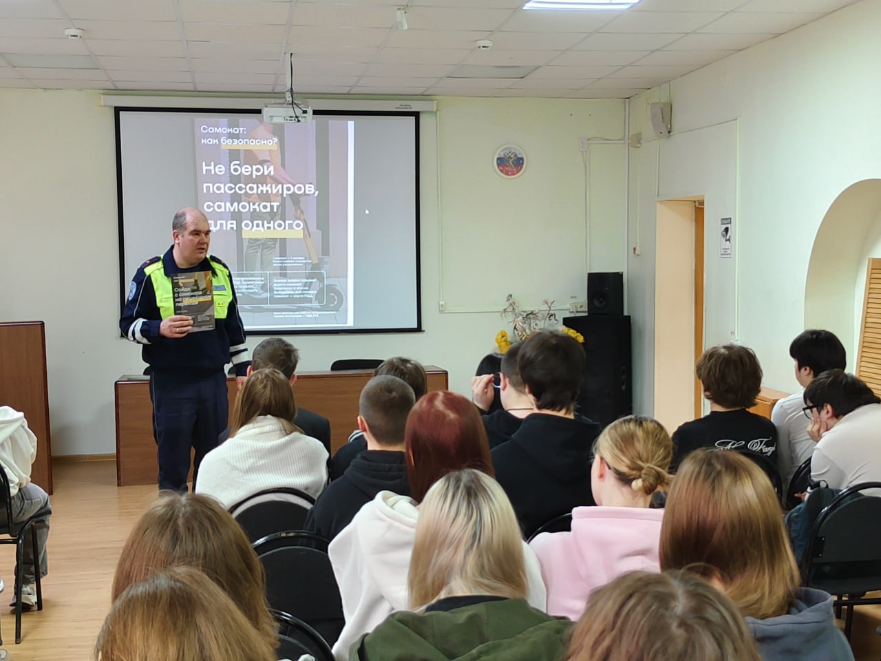 Полицейские подробно остановились на правилах для водителей электровелосипедов, самокатов и питбайков. Студентам напомнили, что питбайк — это спортинвентарь, которому закрыт выезд на городские дороги. На электросамокате запрещено перевозить пассажиров (правило «один самокат — один человек»), а при переходе дороги на велосипеде или самокате необходимо обязательно спешиваться.