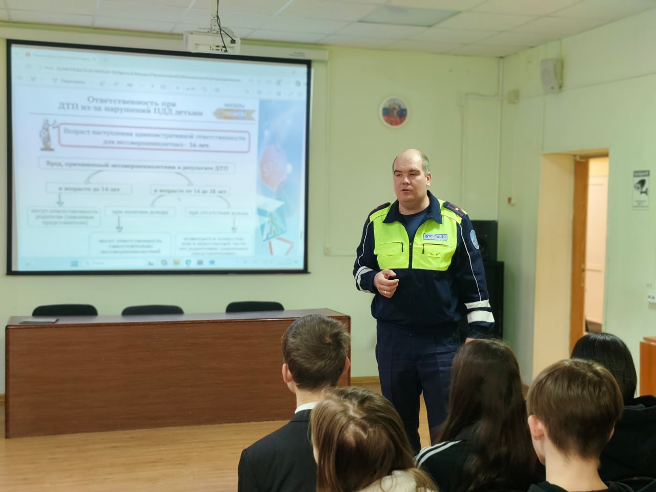 Отдельный блок встречи был посвящен юридическим последствиям. С помощью наглядных слайдов инспекторы разъяснили, когда наступает административная ответственность, какие штрафные санкции за различные нарушения ПДД.