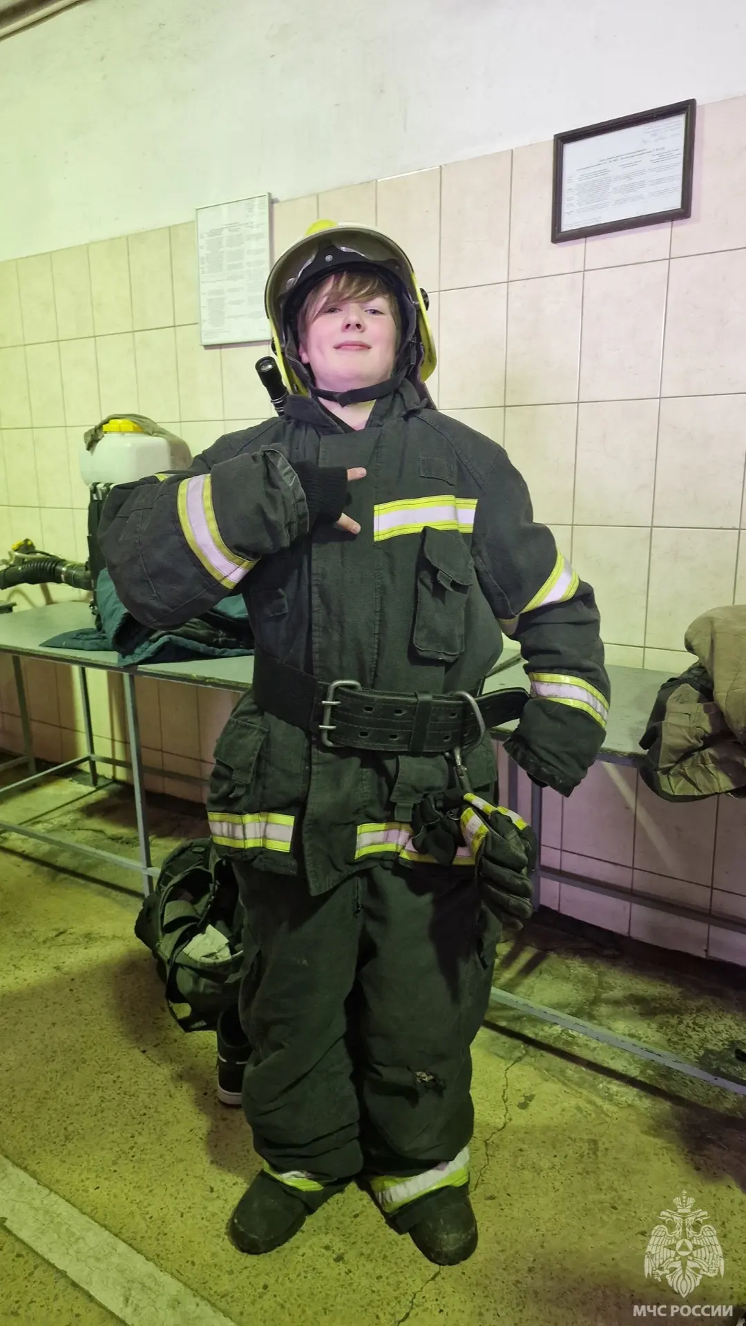 Учащиеся надевали боевую одежду и снаряжения пожарного, пожарную каску, посидели за рулём пожарного автомобиля и в кабине пожарных.