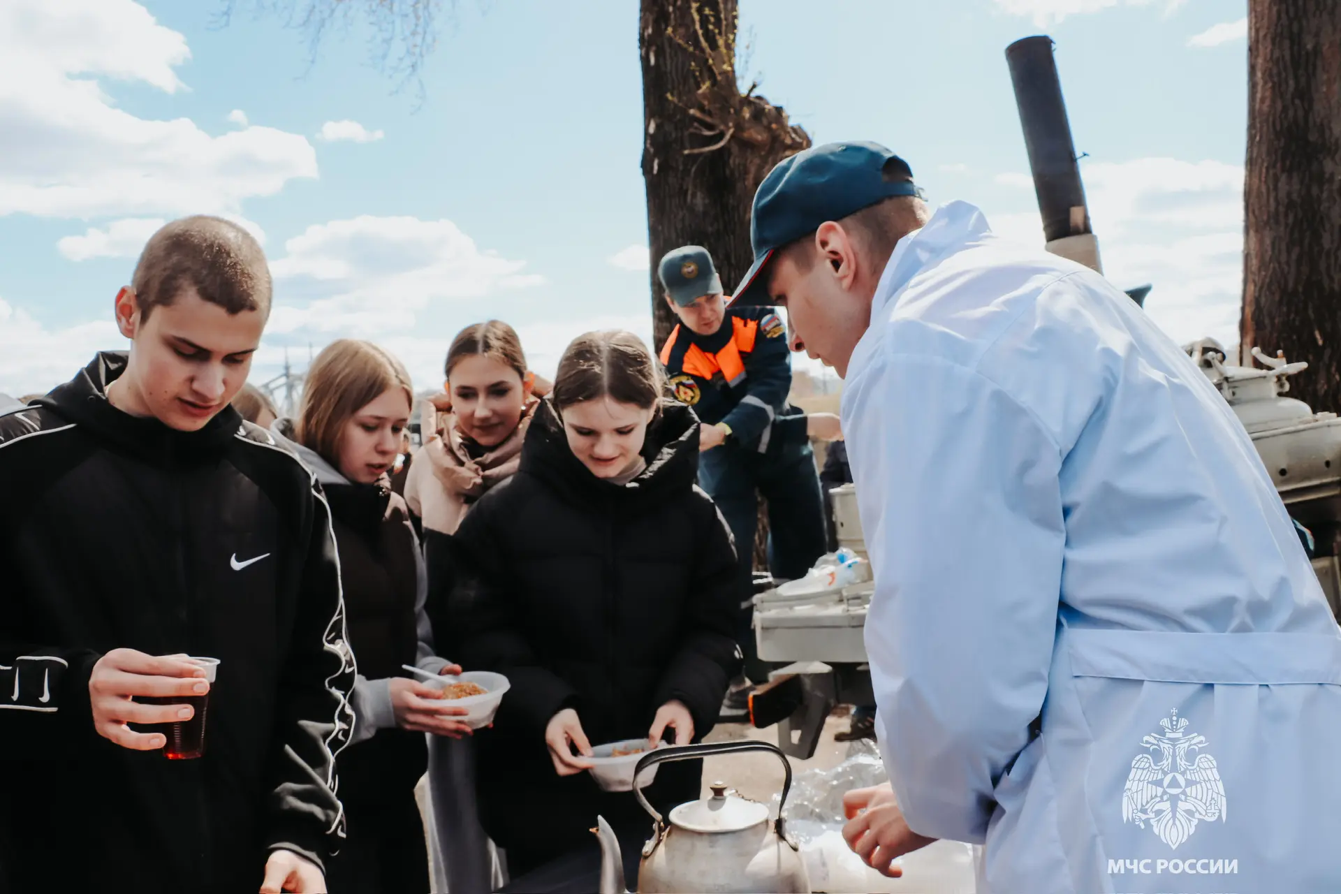 МЧС Тверской области для участников субботника была организована полевая кухня с горячей кашей и ароматным чаем.