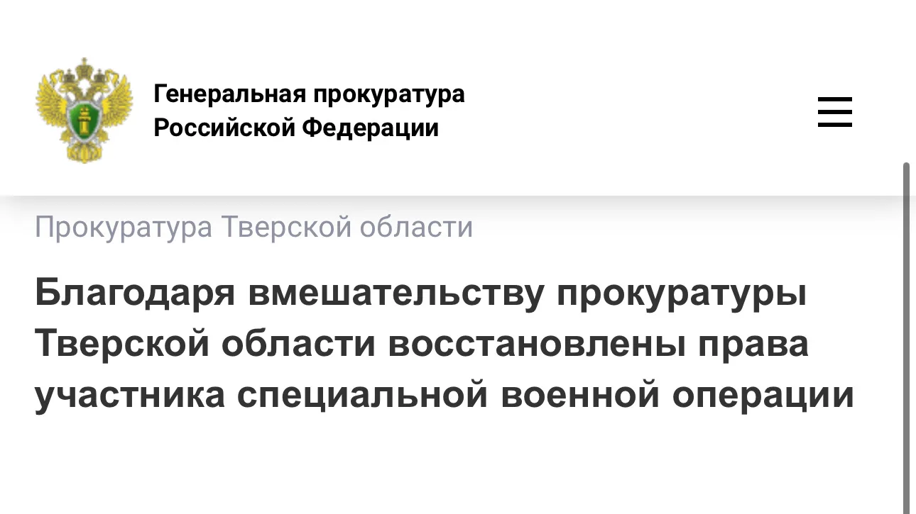 Прокуратура Пролетарского района г. Твери Тверской области провела проверку по обращению участника специальной военной операции о неправомерных действиях банка при предоставлении кредитных каникул.