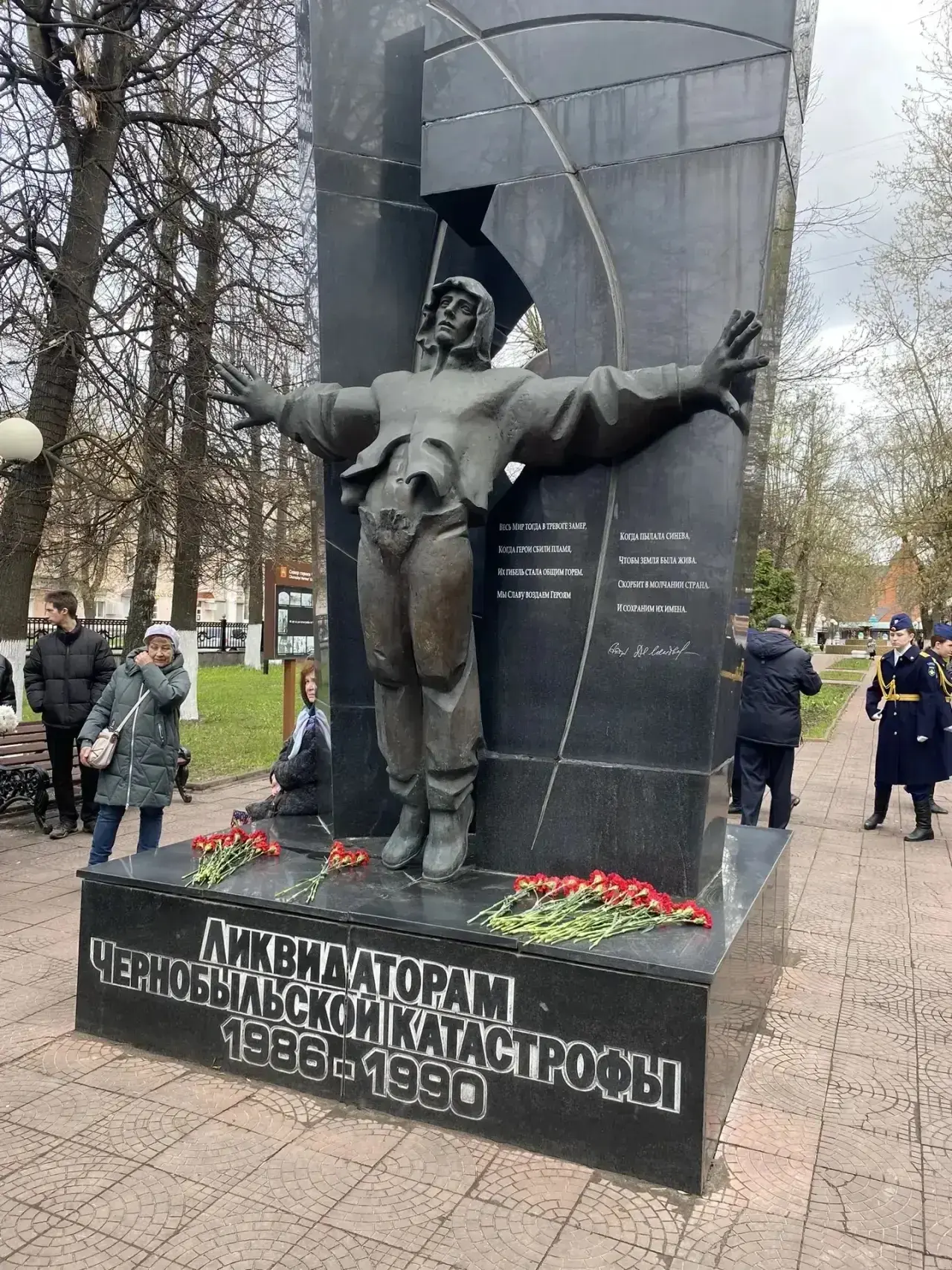 Они возложили цветы к памятнику Ликвидаторам Чернобыльской катастрофы и почтили память ушедших из жизни чернобыльцев минутой молчания.