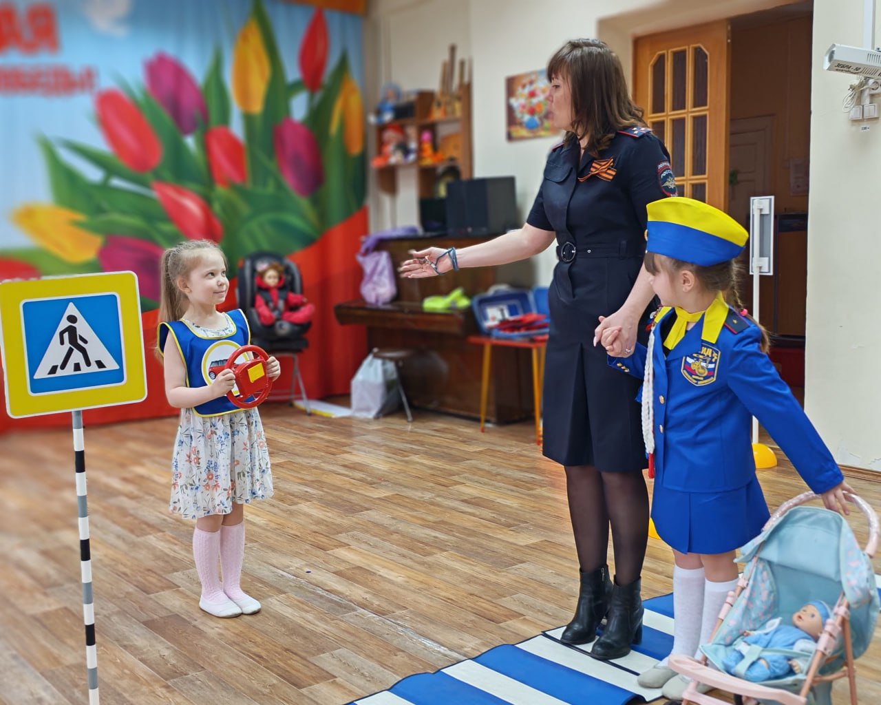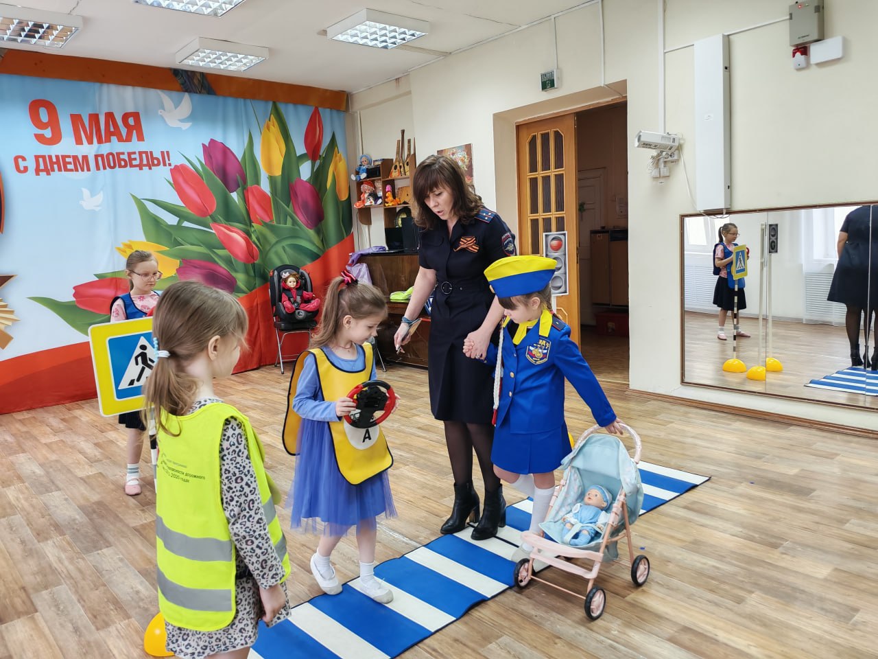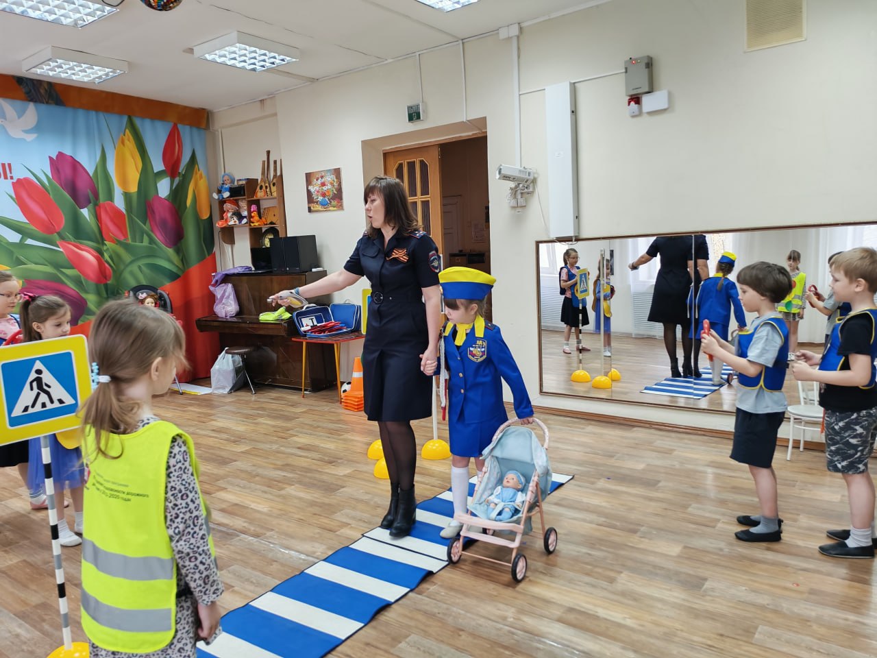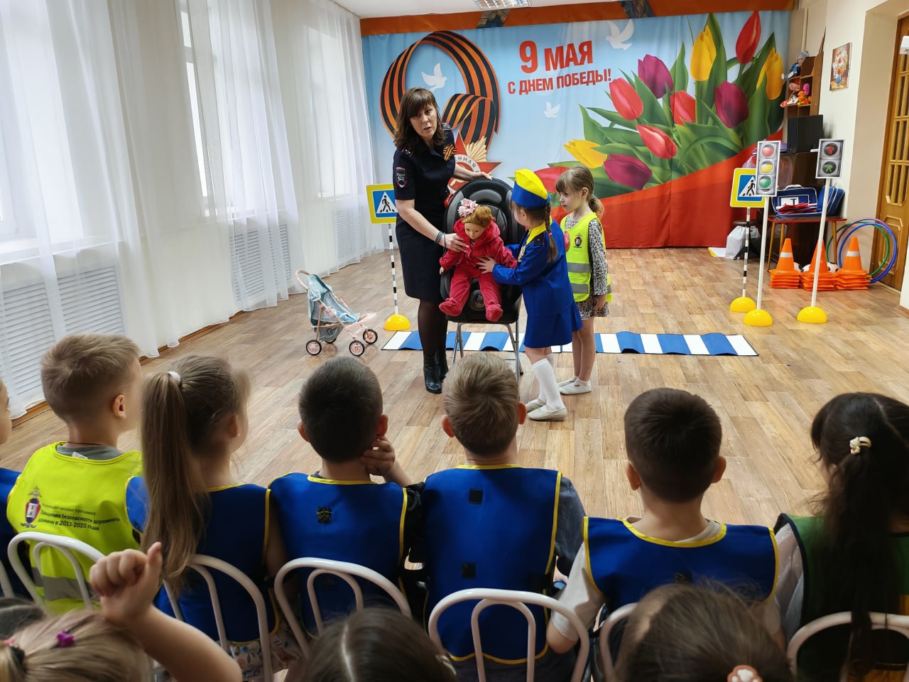 27 апреля сотрудники городской Госавтоинспекции вместе со своими юными помощниками — дошколятами из отряда ЮИД ДОУ № 23 — организовали для ребят настоящее погружение в мир дорожных правил. Благодаря мобильному оборудованию обычный зал превратился в безопасную улицу со знаками и работающими светофорами.