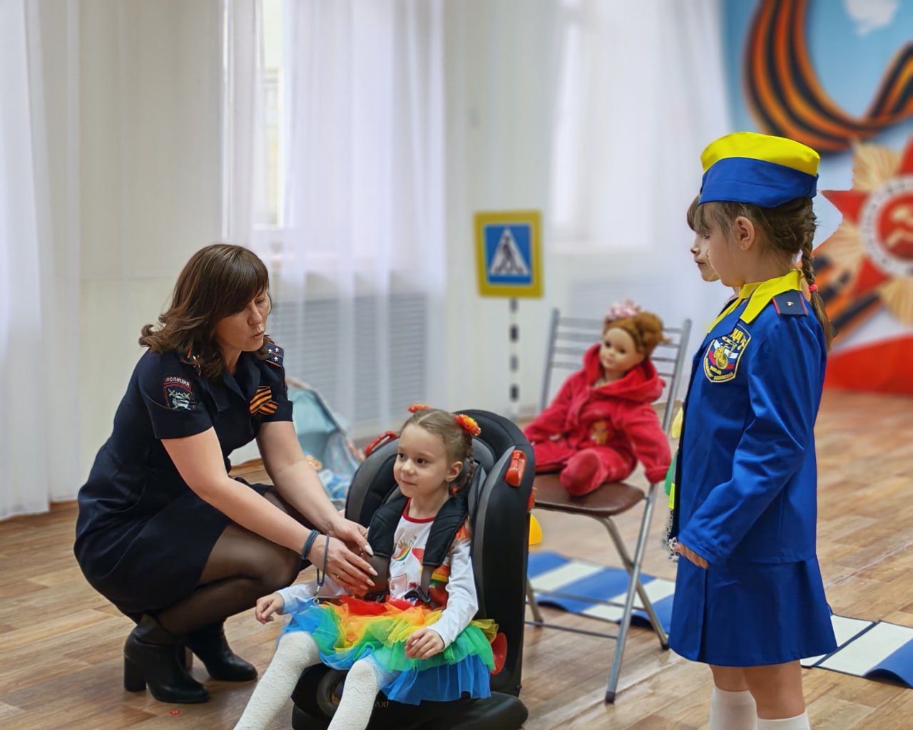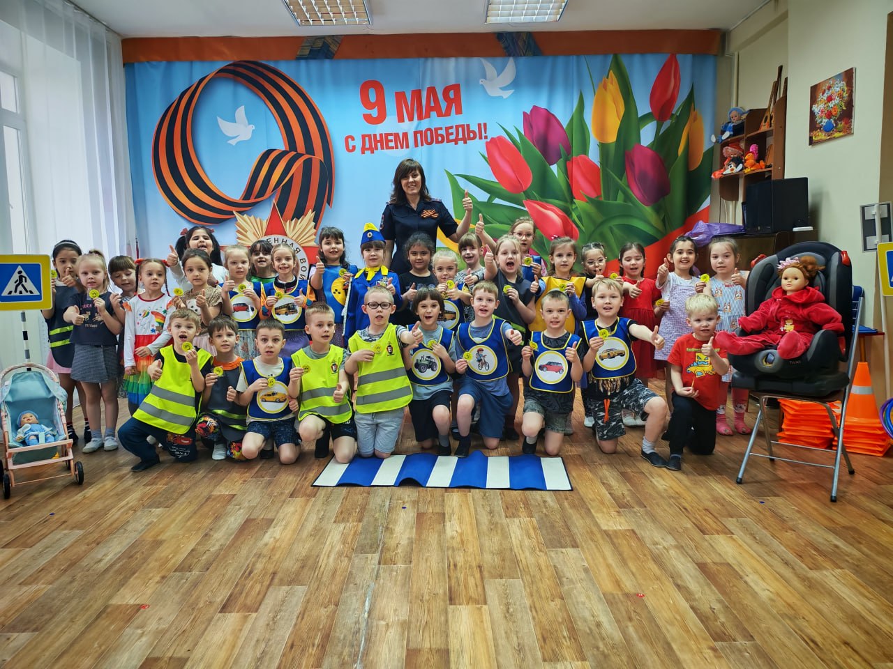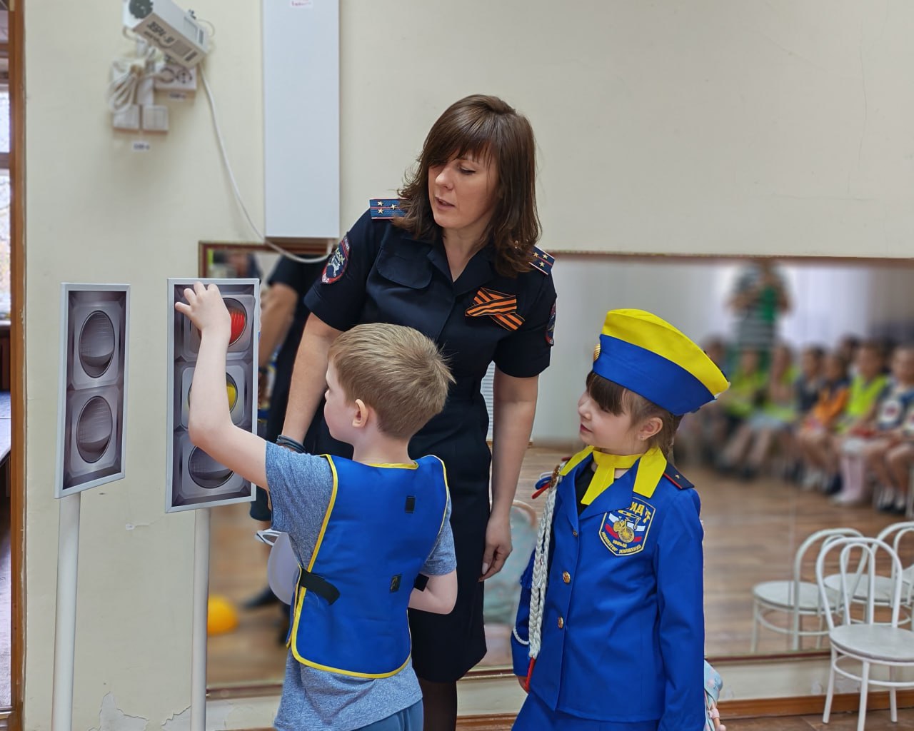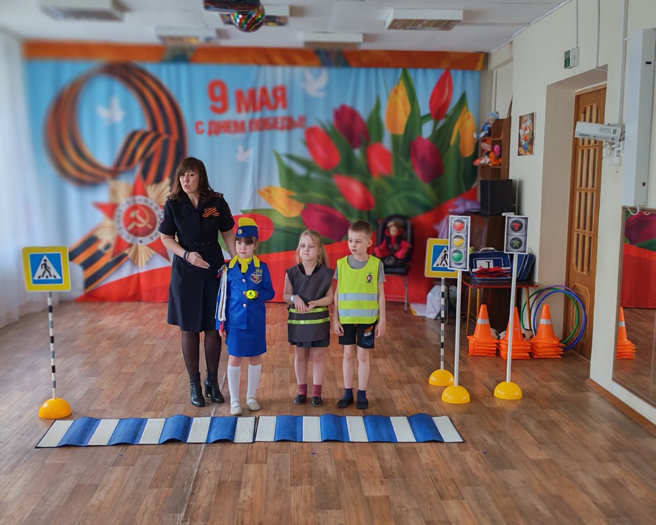 27 апреля сотрудники городской Госавтоинспекции вместе со своими юными помощниками — дошколятами из отряда ЮИД ДОУ № 23 — организовали для ребят настоящее погружение в мир дорожных правил. Благодаря мобильному оборудованию обычный зал превратился в безопасную улицу со знаками и работающими светофорами.