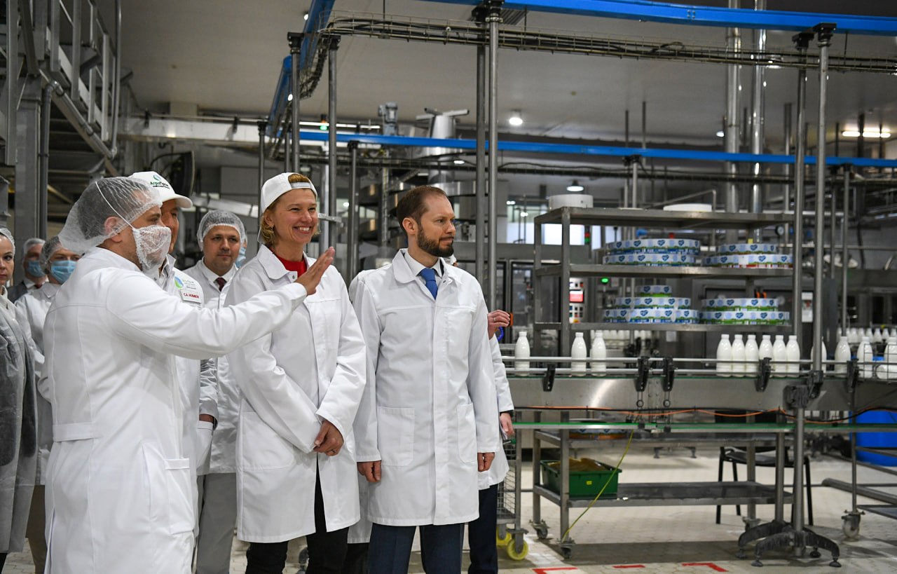 На Дмитрогорском молочном заводе, который перерабатывает до 200 тыс. тонн сырого молока и выпускает 95 тыс. тонн готовой продукции ежегодно, главе Тверского региона Виталию Королеву и министру сельского хозяйства РФ Оксане Лут продемонстрировали высокий уровень автоматизации и роботизации производства. Глава региона и руководитель Минсельхоза РФ продегустировали продукцию предприятия, отметили ее качество.