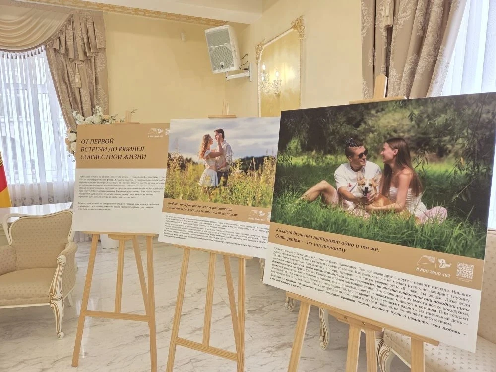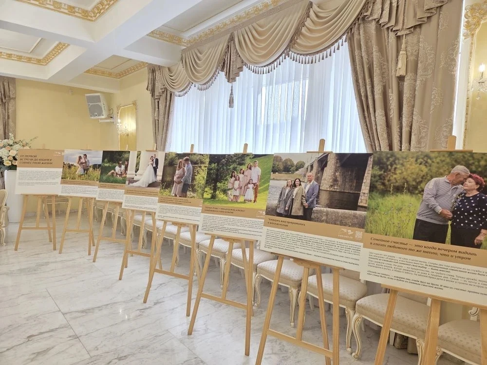 Реальные истории счастливых семей Верхневолжья представлены на выставке фотографий «От первой встречи до юбилея совместной жизни», которая открылась во Дворце бракосочетания Тверской области