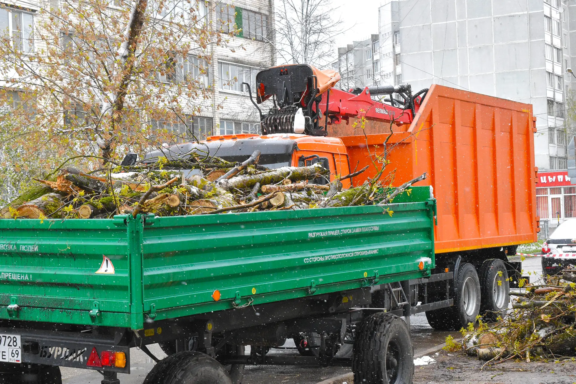 Городские коммунальные и спасательные службы устраняют последствия непогоды