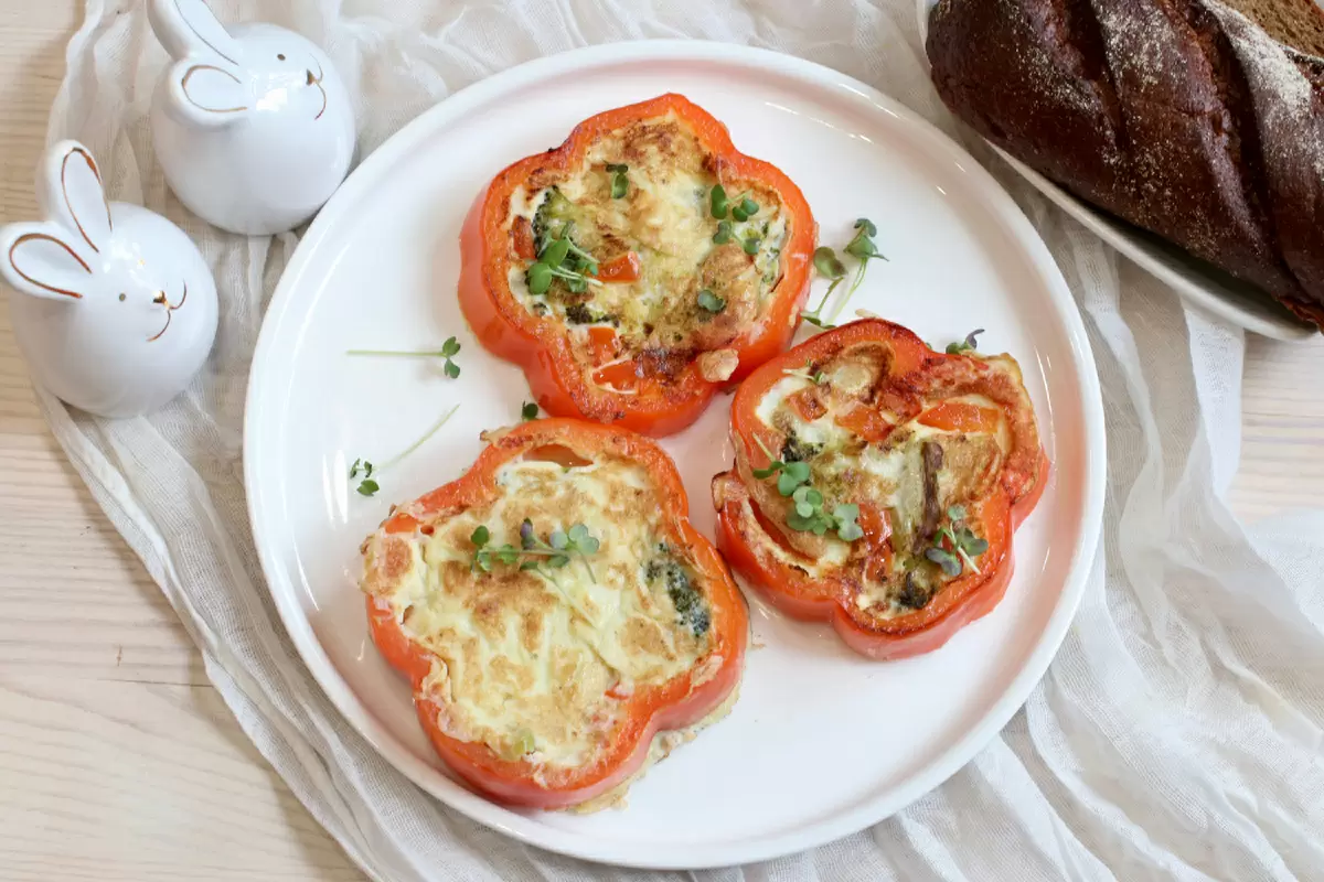 - Имеетли нежную текстуру омлета, хрустящие соцветия брокколи и сочные кольца перца;