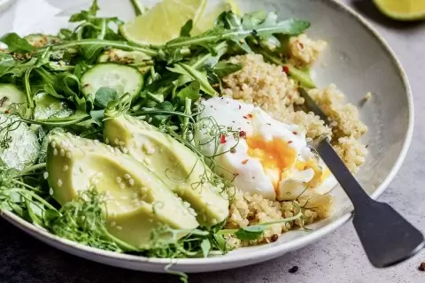 Вкусный боул с киноа и яйцом пашот, который порадует вас