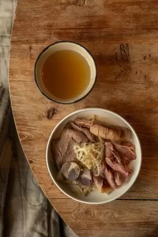 - Вяленый гусь с свеклой и козьим сыром