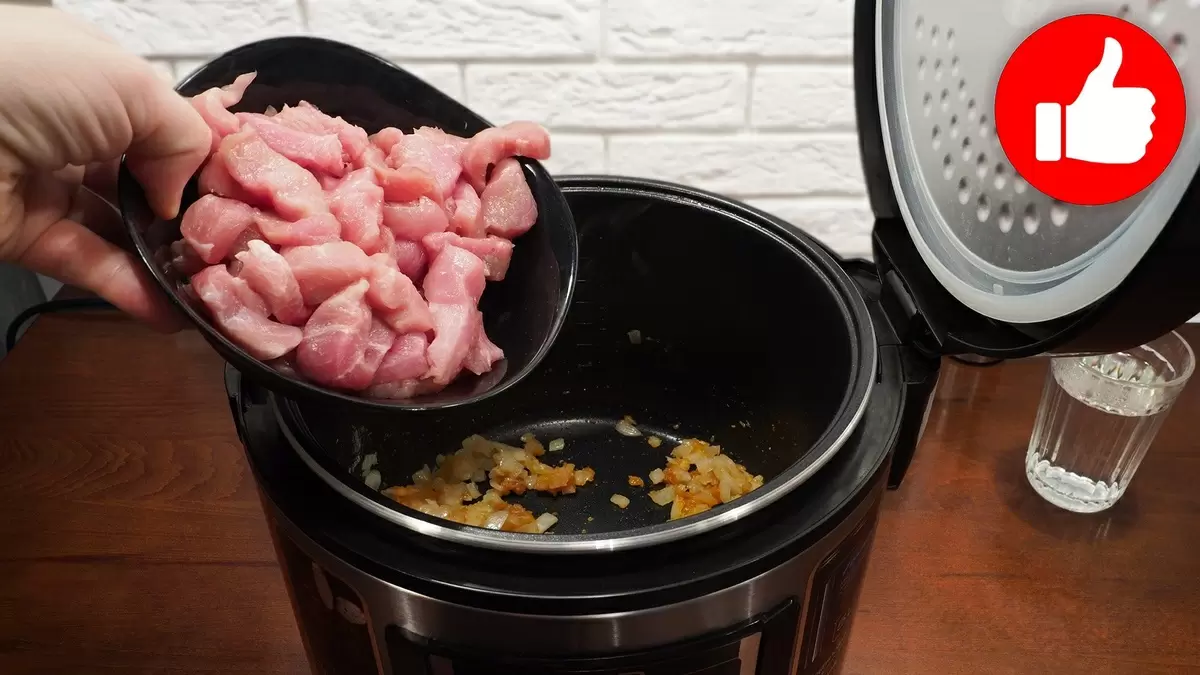 1. Включите режим «Жарка» на мультиварке и налейте в чашу подсолнечное масло. На разогретом масле обжарьте нарезанный лук в течение 2 минут.