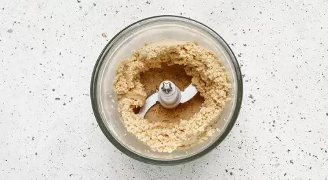 Для начала важно просушить арахис в духовке при температуре 180 °C на протяжении 5 минут. Затем, после остывания, очистите его от шелухи и измельчите в блендере до состояния мелкой крошки.