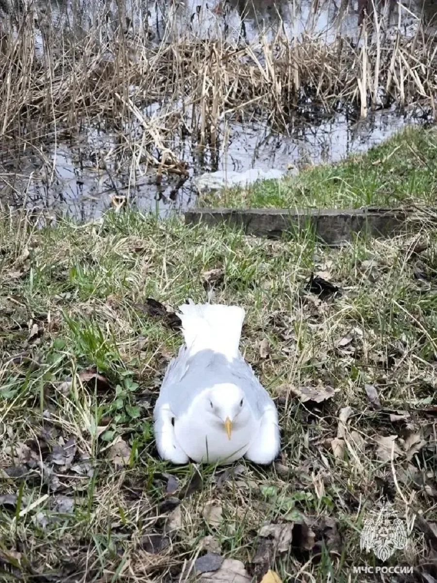 В Твери спасатели освободили чайку, запутавшуюся в леске и повисшую на проводах.