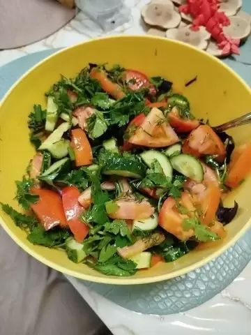 Приготовление этого салата не отнимет много времени и сил. Для начала стоит нарезать помидоры и огурцы на кусочки, чтобы они хорошо впитали ароматы других ингредиентов. Далее, вручную нарезанный базилик и кинзу добавляют в общую массу, что придаст блюду свежесть и оригинальный вкус.