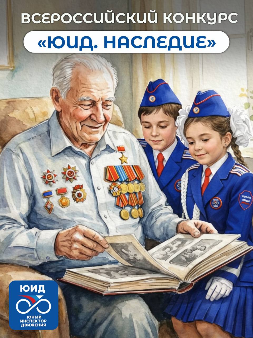 Всероссийский конкурс «ЮИД. Наследие» — это возможность для юных инспекторов движения прикоснуться к живой истории своей семьи, своего региона и всей страны. Участникам предстоит провести поисковую работу и рассказать о ветеранах Великой Отечественной войны — предках юных инспекторов движения и наставниках, показав не только их подвиг в военные годы, но и путь в мирное время, вклад в воспитание подрастающего поколения и влияние на становление юидовцев сегодня