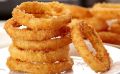 Кляр готовится из муки, кукурузного крахмала и специй, а холодная газировка придаёт ему легкость, что делает оболочку хрустящей. Луковые кольца обмакиваются в кляр и обваливаются в панировочных сухарях, прежде чем отправиться на сковороду.
