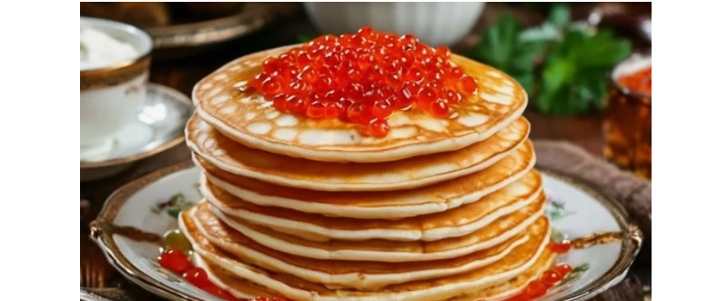Эти древнейшие изделия из теста, существующие с IX века, неразрывно связаны с Масленицей. Блины могут быть поданы с множеством начинок: от сметаны до красной икры.