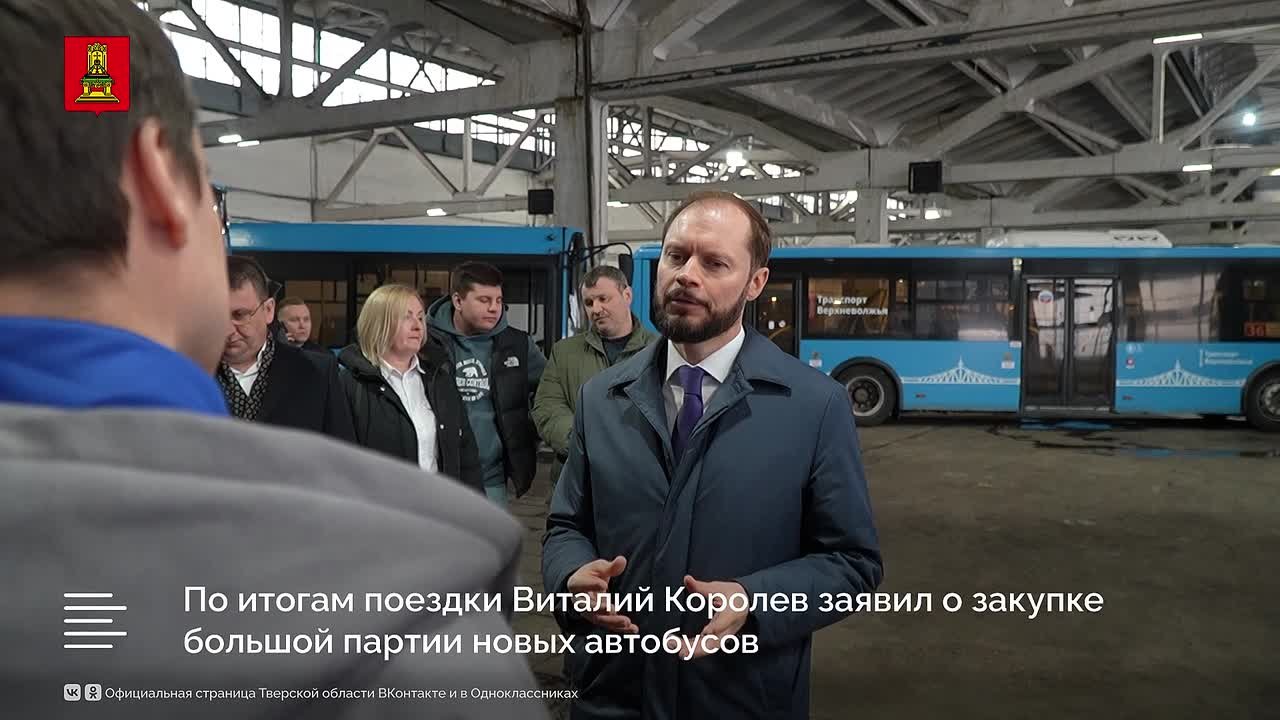 Глава Тверской области Виталий Королев заявил о новом этапе развития "Транспорта Верхневолжья". Решение принято по итогам поездки в Верхневолжское АТП, где руководитель региона детально изучил проблемы общественного транспорта, проверил соблюдение расписание автобусов, работу с обращениями граждан и пообщался с коллективом предприятия.